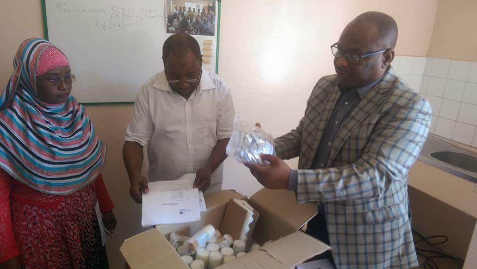 Le Conseiller technique de la Ministre de la Santé, Mbèchezi Youssouf Nadjime-dine, a accompagné le Dr. Said Anli ABOUBAKAR au Laboratoire de l’Hôpital Elmaarouf où le Chef du service Dr. Halifa Youssouf a eu le privilège de réceptionner le carton.