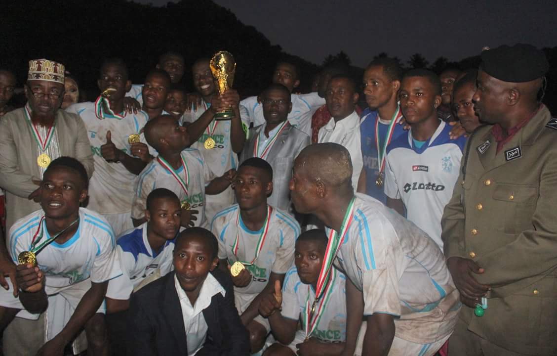 Ce lundi 15 mai 2017, le Gouverneur de l’Île Autonome de Ndzuwani Son Excellence Dr Abdou Salami Abdou, en compagnie des membres de son Exécutif, a honoré de sa présence à la Finale de football de la Coupe de la Coopérative de l’UDC (Université Des Comores) – site de Patsy, compétitions organisées par la Coopérative à l’occasion de la célébration du premier anniversaire de la mandature du Gouverneur Hakim Dr SALAMI à la magistrature suprême de Ndzuwani. C’est le stade de Patsy qui a abrité la compétition.