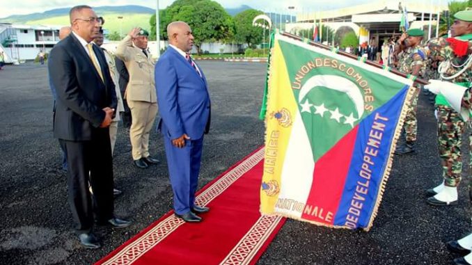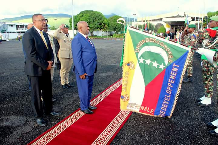 Il a été accueilli à sa descente d’avion par le Vice-président Djaffar Ahmed Saïd qui assumait l’intérim du Président de la République, le Commissaire aux finances de Ngazidja, assumant l’intérim du Gouverneur de Ngazidja et par le Chef D’État Major de l’Armée Nationale de Développement, ainsi que par plusieurs personnalités du pays.