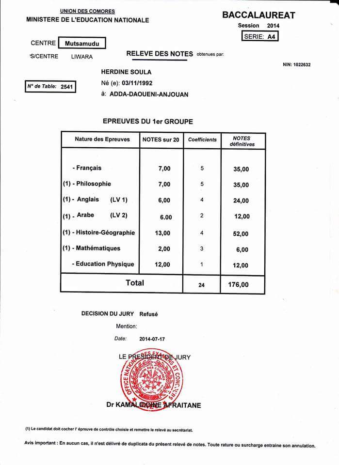 C’est la première fois dans l’ histoire de Comores champions dans le monde entier en matière d’ usurpation de l’ Etat civil , surtout pour diminuer l’ âge , que nous trouvons un cas contraire . Cela doit rester dans les annales .
