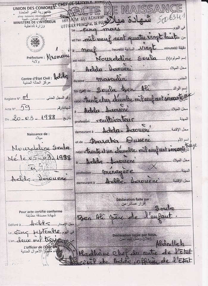 Histoire incroyable mais vraie. Voici les preuves montrant que Nourdine Soula a menti sur son âge mais surtout sur son identité.