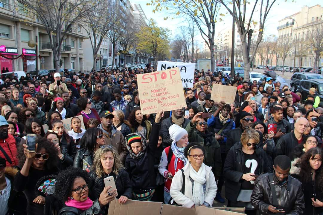 Ce samedi 25 novembre plusieurs personnes ce sont réunies à Marseille pour dire stop à la vente et à l’esclavage des noirs en Libye. A Marseille, ils étaient une centaine rassemblés sur l’avenue du Prado, non loin du consulat général de Libye. « Non à l’esclavage ! », scandait au micro un membre du CECCL-Paca (Collectif Contre l’Esclavage et les Camps de Concentration en Libye) sur une estrade.