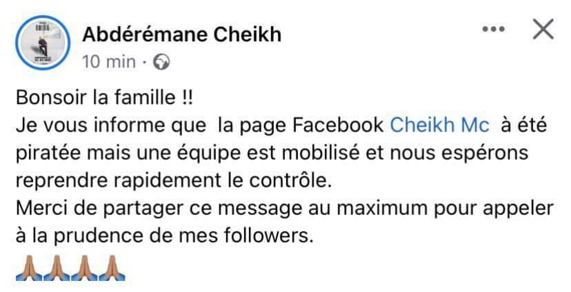 Le Rappeur comorien Cheick Mc a perdu le contrôle de sa page Facebook officielle. Après le piratage de la page Ortc, c’est la deuxième page comorienne qui est tombée sous les mains des pirates.