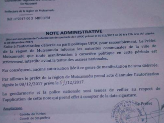 Le régime d’Azali interdit le parti Updc de s’exprimer à Mutsamudu