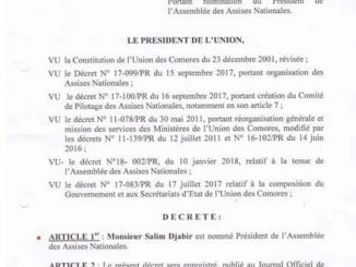 L’ambassadeur de la Confédération Suisse pour l’Union des Comores, Madagascar et Seychelles, Philipe Brindt, a effectué une visite au Comité de Pilotage des Assises Nationales ce jeudi 11 janvier 2018. « Je suis venu m’acquérir […]