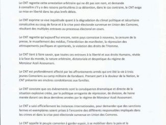 Comoriens, comoriennes,… Je viens de prendre connaissance de ce document qui me désolidariserait du Colonel Soilih Mohamed Campagnard. Je vous informe que ce document est un faux et que ma détermination à lutter pour des […]