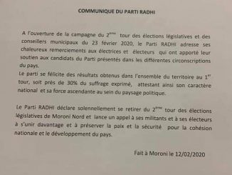 Le parti Radhi se retire des élections législatives à Moroni et lance un appel