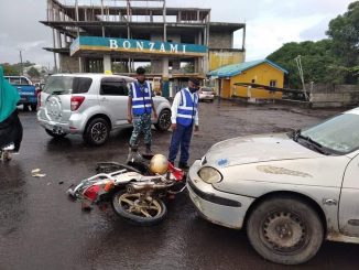 Une moto et un véhicule se sont violemment percuté au niveau du rond-point Bonzami. La gendarmerie qui s’est rendue sur place n’a pas encore livré les circonstances de l’accident.