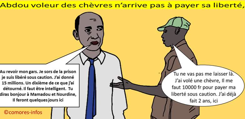 Dessin Satirique. Aux Comores, il faut voler plus pour payer plus sinon on moisit en prison.