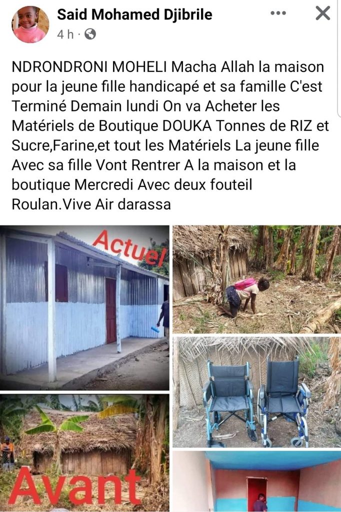 L’association Air Darassa vient d’aider une famille en construisant une maison à une dont la fille est handicapée. Air Darassa devrait également offrir une boutique également.