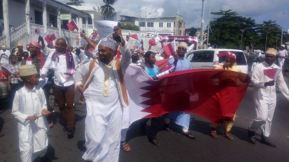 En direct du grand rassemblement après la prière du vendredi à Moroni contre la décision du gouvernement comorien de rompre les relations diplomatiques avec l’État du Qatar. Le peuple comorien derrière l’État du Qatar et le Gouvernement comorien derrière le Royaume Saoudien.