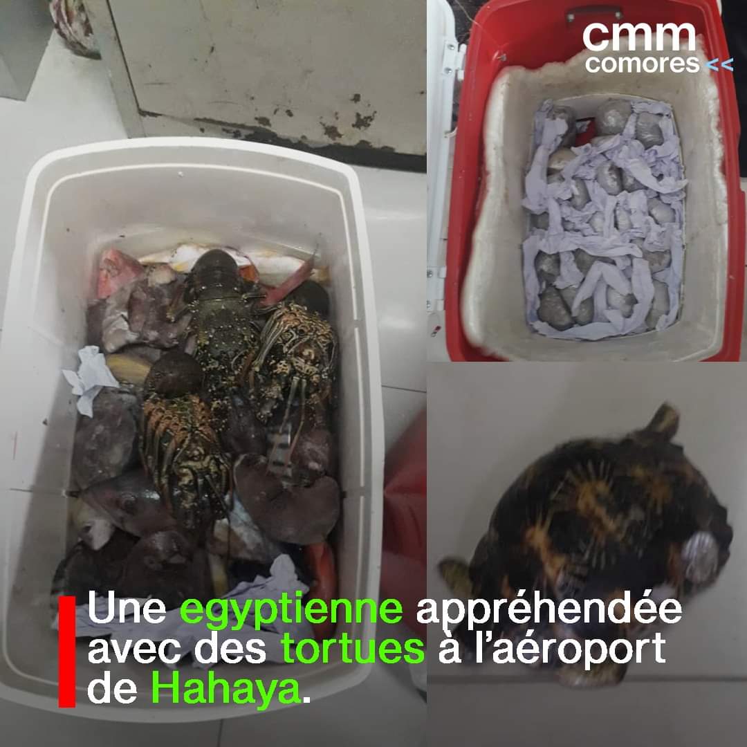 En Aout dernier, un égyptien tentait de quitter les Comores à bord du vol d’Egypt Air avec en sa possession deux glacières contenant respectivement 51 et 36 petites tortues.