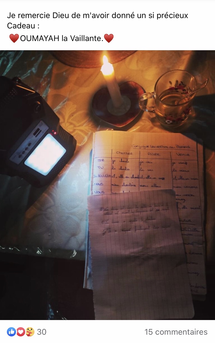 Rentrée aux Comores, Amina Oubeid rend hommage à sa fille qui doit faire ses devoirs sous la lumière d’une bougie