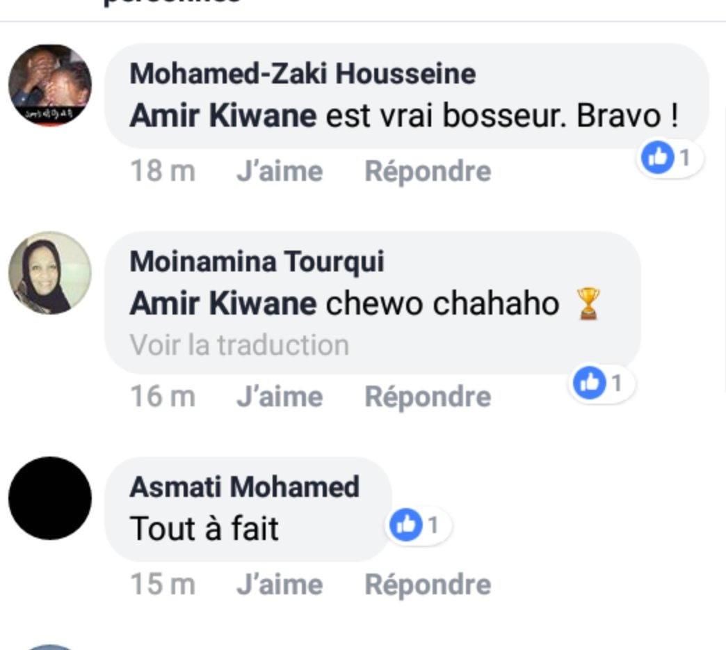 Bravo Amir!, je souhaite que vous soyez suivit, par tous les comoriens partout où ils sont et le monde entier.