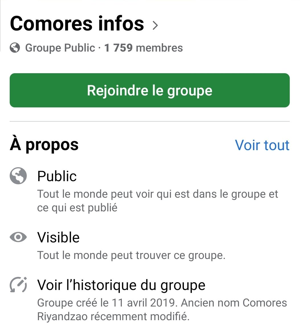 Attention, les arnaques se multiplient. Des voleurs ont volé le logo du site Comores infos, le nom et ont créé des faux groupes et des fausses pages. Nous tenons à vous rappeler que le groupe Comores infos comptabilise plus de 45 000 personnes et la page officielle plus de 100 000 personnes. Comores infos ne lance jamais de cagnotte en ligne ni tout autre moyen de vous soutirer de l’argent. Voici les responsables du vole de logo et utilisation de notre marque.