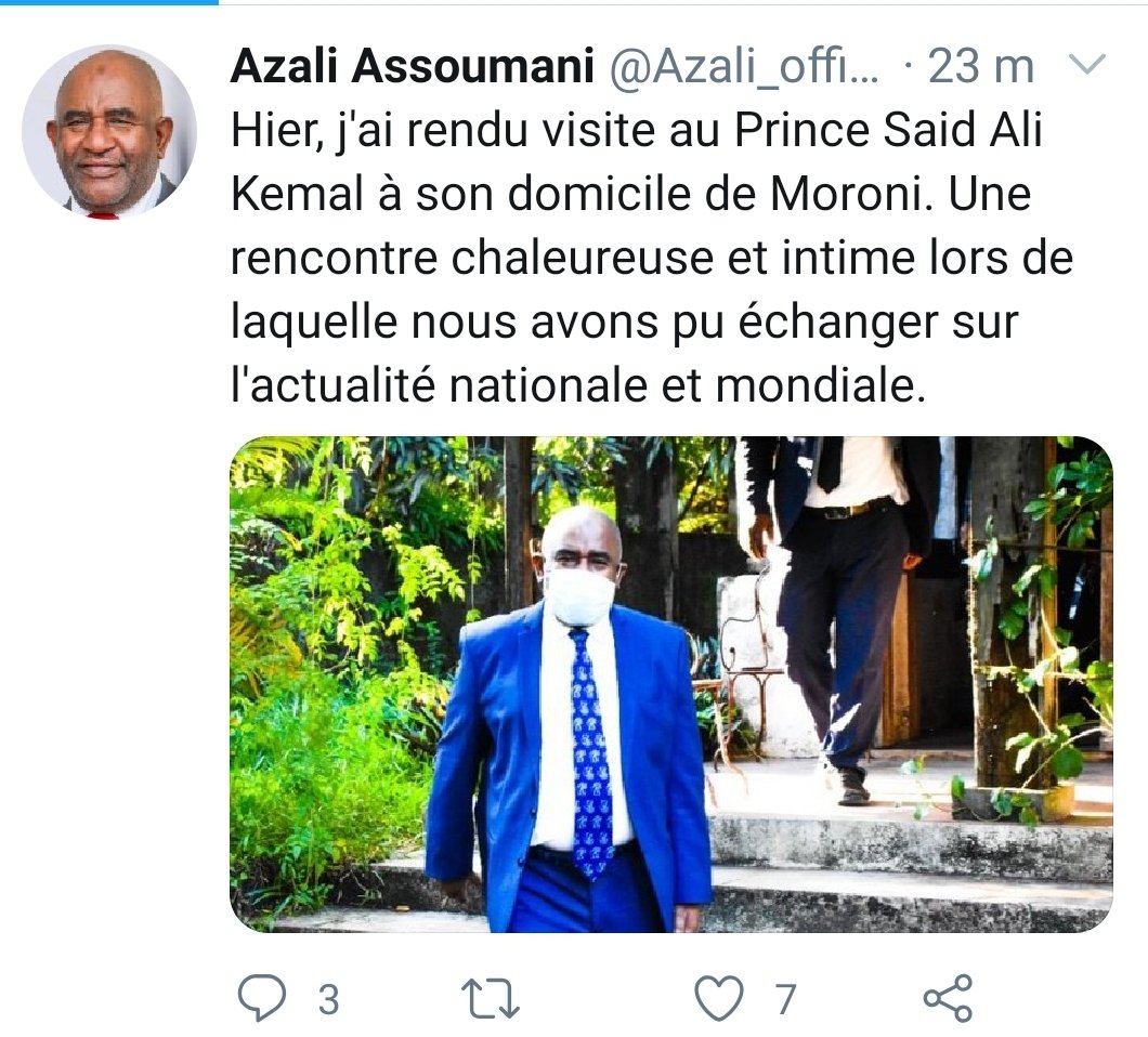 Le président Azali Assoumani a rendu visite au Prince Said Ali Kemal à son domicile. « Une rencontre chaleureuse et intime » selon Azali.