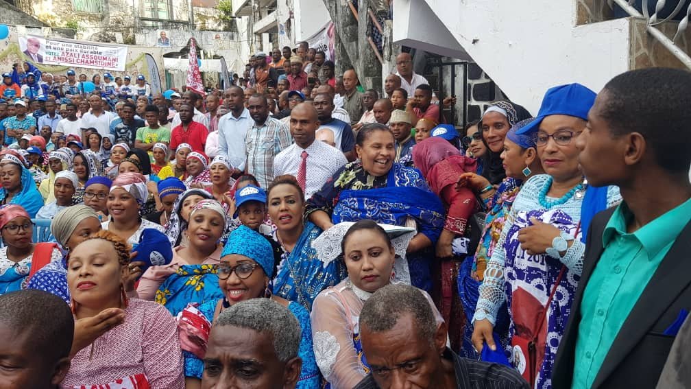 Ce lundi, la mouvance présidentielle a fait vibrer la ville de Mutsamudu dans une bonne ambiance. Les mutsamudiens et mutsamudiennes ont accueilli avec amour le candidat Azali Assoumanisur la Place de Pangahari de Mutsamudu, lieu historique et symbolique de la ville.