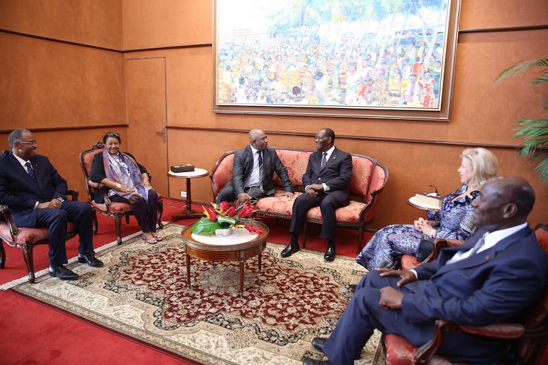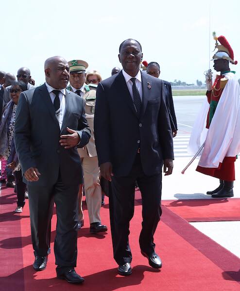 Le Président de la Côte d’Ivoire , Alassane OUATTARA, a accueilli, ce mardi 28 novembre 2017, à l’Aéroport international Félix HOUPHOUËT-BOIGNY d’Abidjan Port-Bouët, le Président Azali Assoumani, qui prend part au 5e Sommet Union Africaine – Union Européenne, prévu, les 29 et 30 novembre prochains, à Abidjan. Les deux Présidents ont affiché une complicité comme le montre les photos.