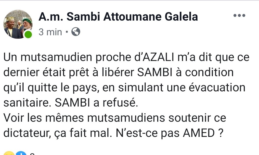 C’est le cousin de l’ancien président Ahmed Abdallah Sambi qui a relevé l’information. Azali était prêt à libérer l’ancien président Sambi mais le président Azali a posé une seule condition.