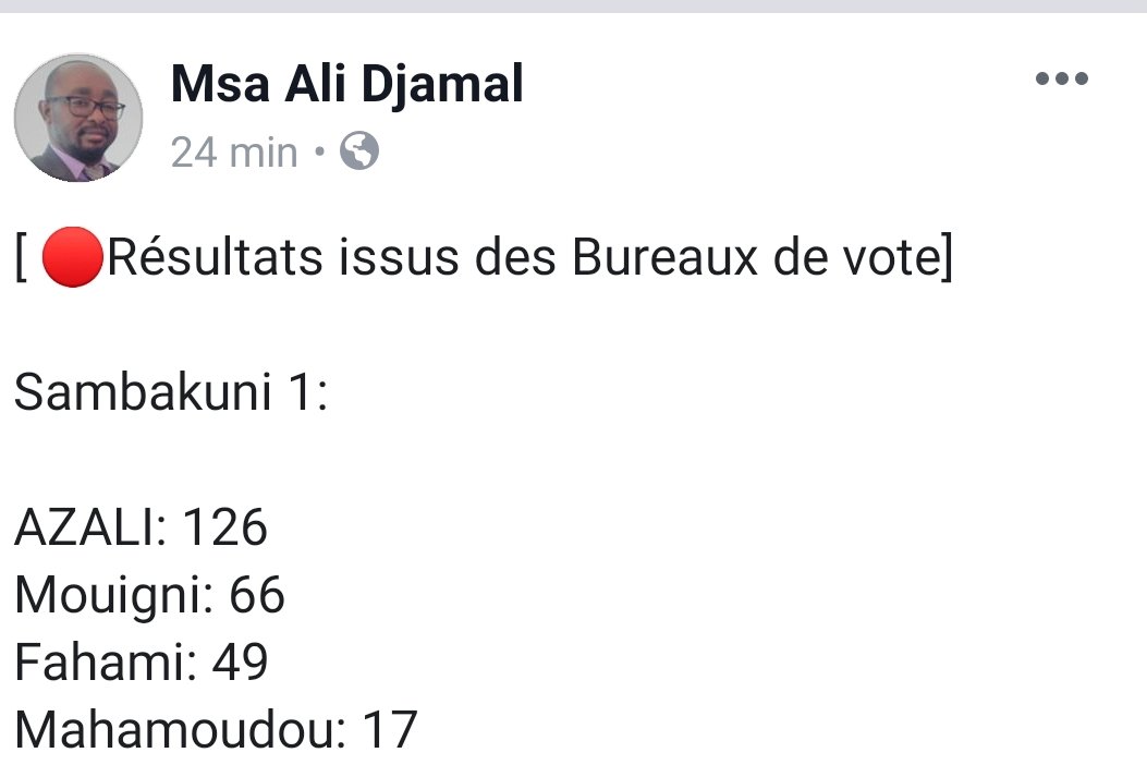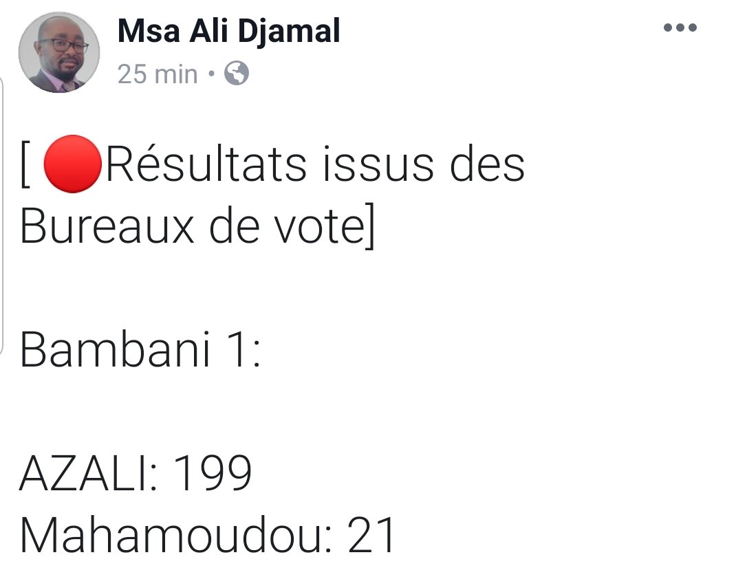 Le dépouillement a déjà commencé. L’ancien directeur de l’ortc, Msa Ali Djamal a commencé à publier progressivement les résultats.