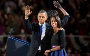 7h45. J’ai salué le gouverneur Romney et Paul Ryan et je les ai félicités pour leur campagne. Je veux remercier l’homme sans qui tout cela n’aurait pas été possible (Joe Biden). Et je veux remercier la femme sans qui je ne serai pas l’homme que je suis devenu. Michelle je t’aime. Je ne t’ai jamais autant aimé et j’ai regardé la nation tombée amoureuse de toi dans cette campagne. A Sasha et Malia, vous avez grandi et vous êtes devenues fortes… Mais non, un chien suffit, » a-t-il plaisanté.