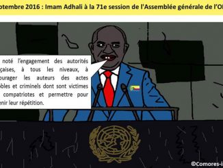 Dessin satirique. Nous vous proposons en avant-première le discours que l’imam prononcera lors de la prochaine AGNU (le discours retouché du gouvernement AZALI en 2005, il va avec le dessin) Monsieur le Secrétaire Général, J’ai […]