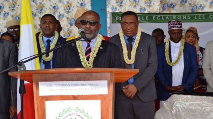 Après avoir inauguré en quelques mois, les centrales de Voidjou à Ngazidja, de Trénani à Anjouan et de Wemani ici à Mwali aujourd’hui, nous posons d’une manière concrète l’acte un dans l’ère de l’émergence, celle de la redynamisation de notre économie dans une approche multisectorielle. « Aide toi le Ciel t’aidera » C’est ce que nous avons voulu faire dans la problématique de l’Energie.