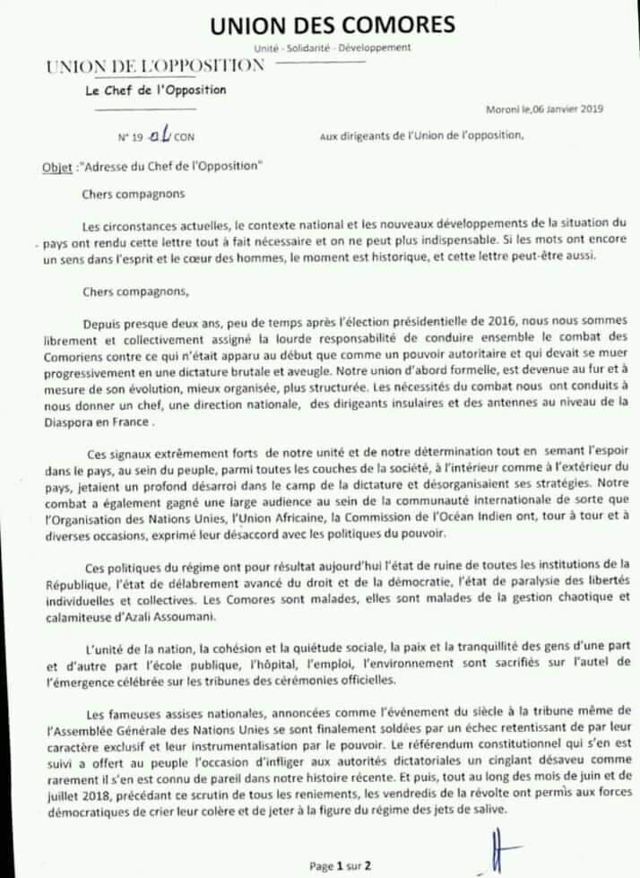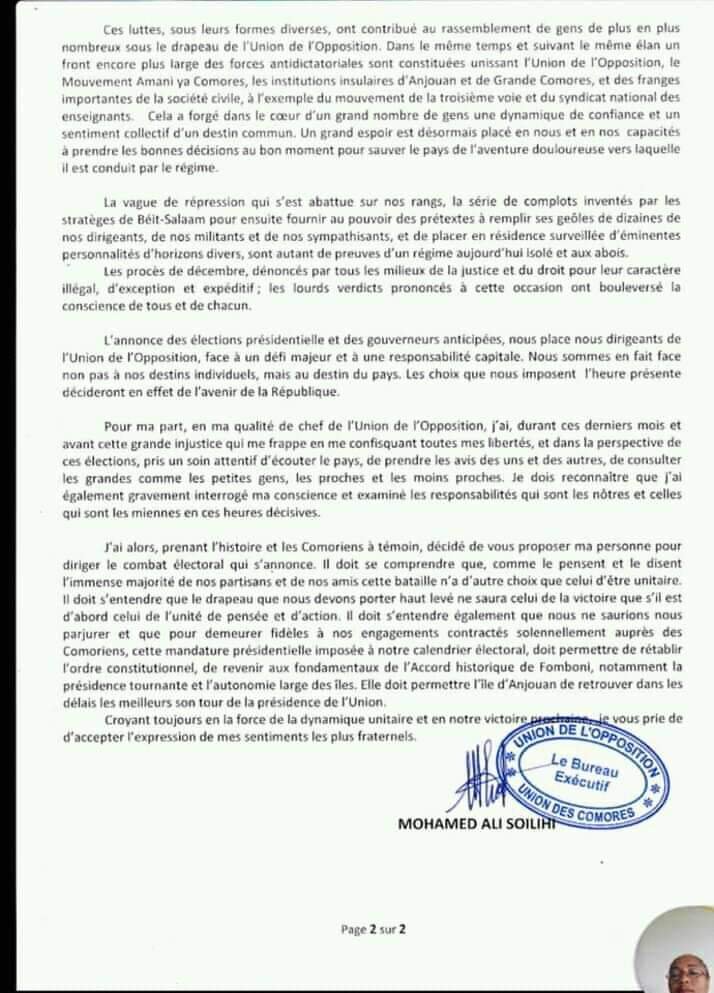 1 commentaire sur Communiqué de l’union de l’opposition sur les élections