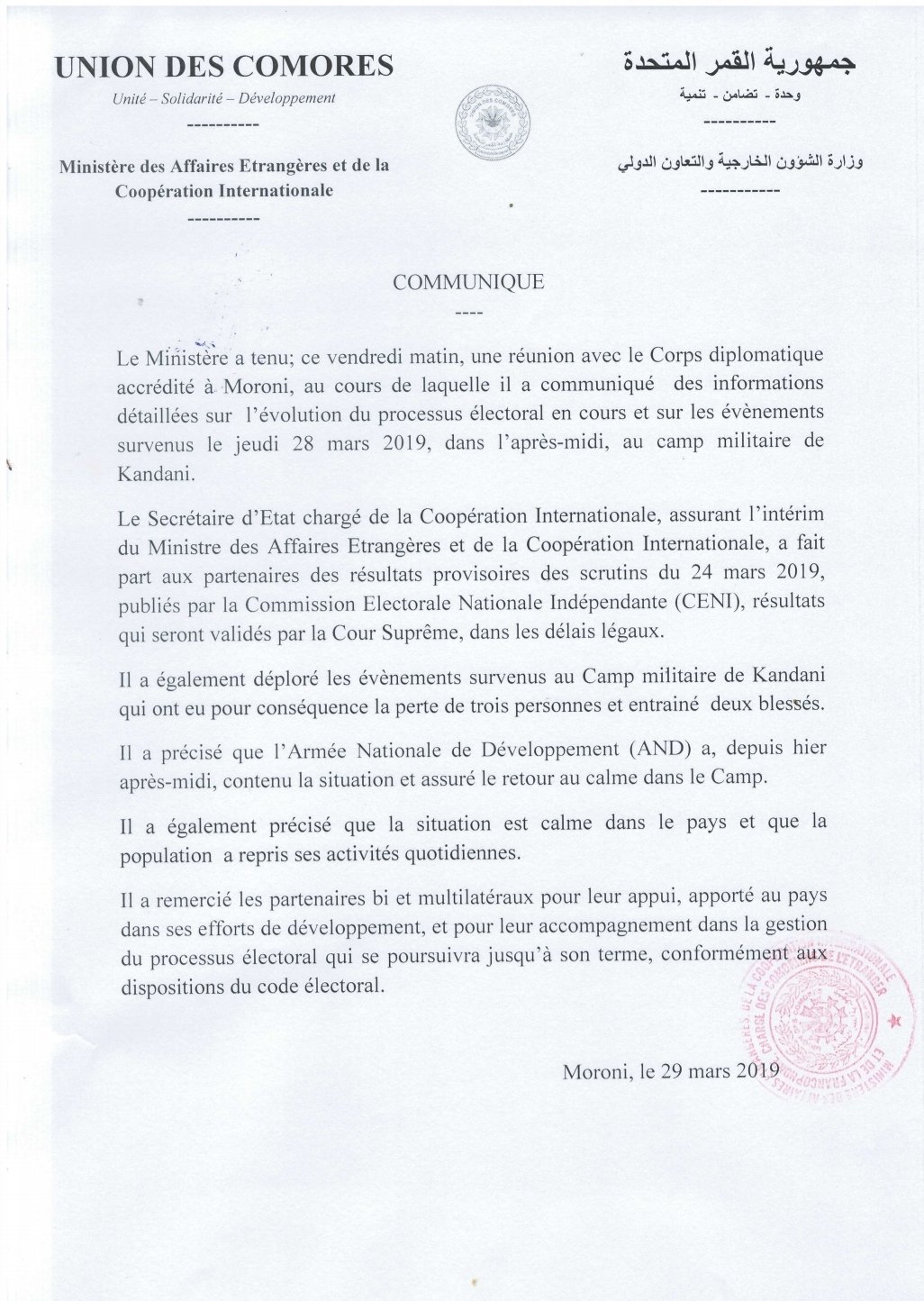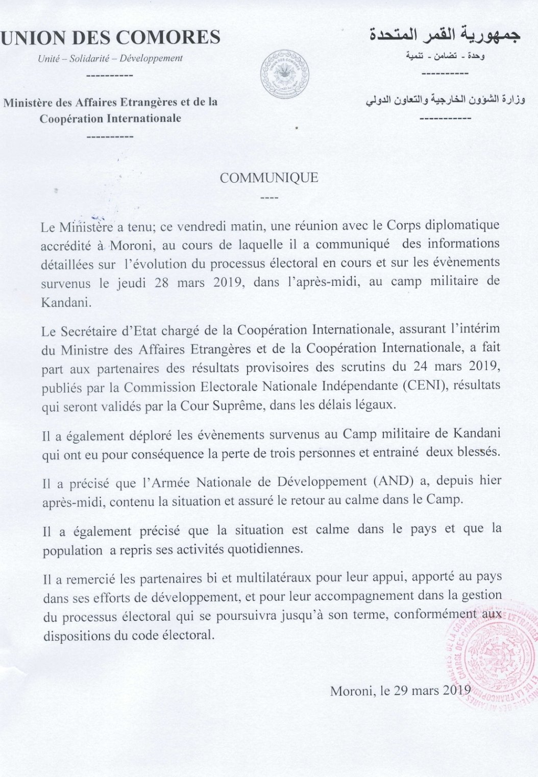 Communiqué du ministère des affaires étrangères sur les événements de jeudi