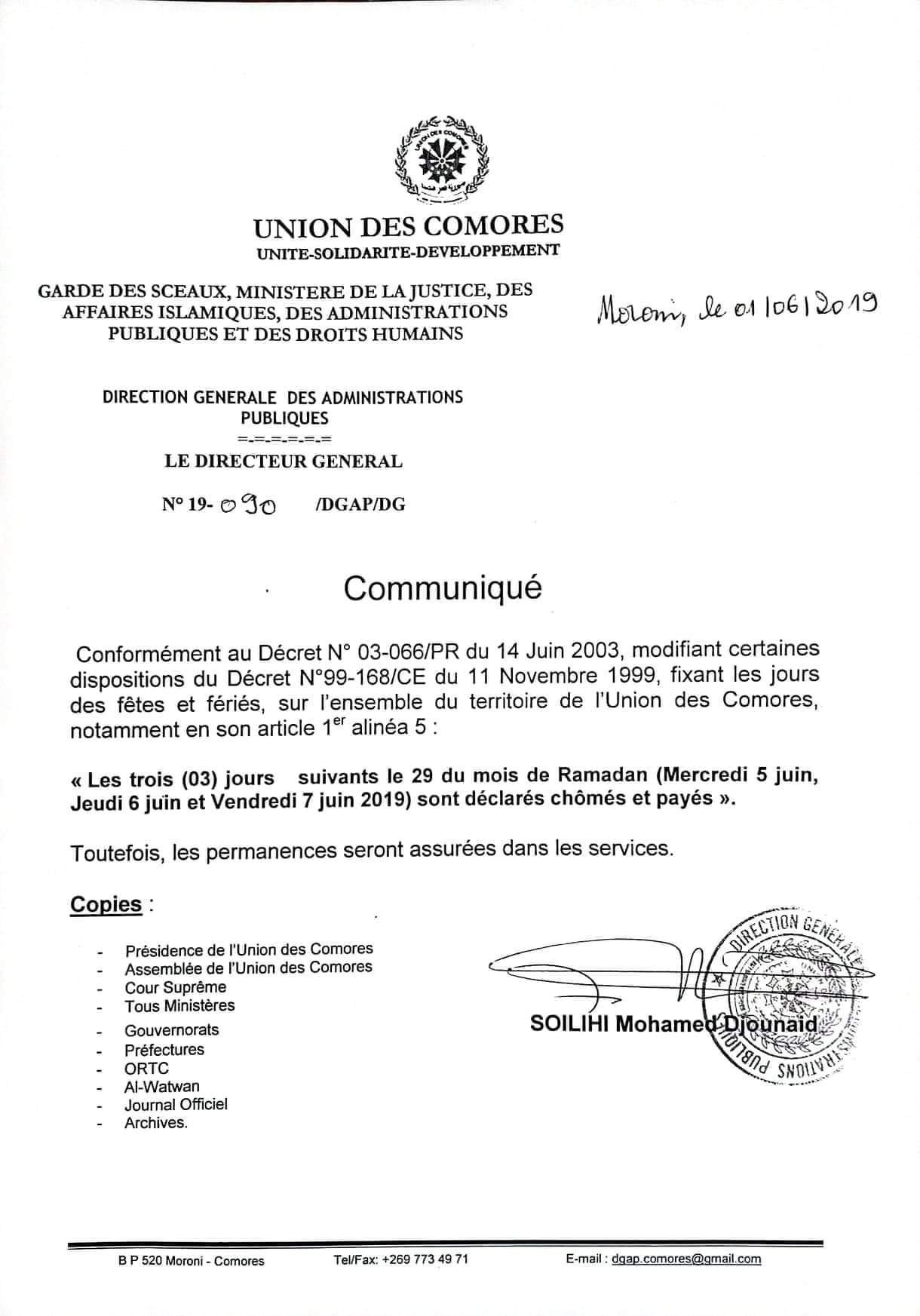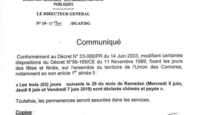 3 commentaires sur Communiqué : Le 5, 6 et 7 juin 2019 sont déclarés chômés et payés