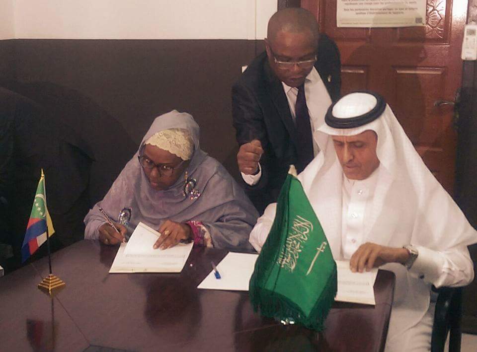 La Ministre de la Santé et l’Ambassadeur saoudien aux Comores ont signé une Convention financière qui vise à octroyer des Bourses d’études pour les spécialisations de 14 Médecins comoriens en Tanzanie. La Cérémonie de signature de cette Convention a eu lieu hier, jeudi 26 Octobre, dans la Salle de Conférence du Ministère de la Santé.