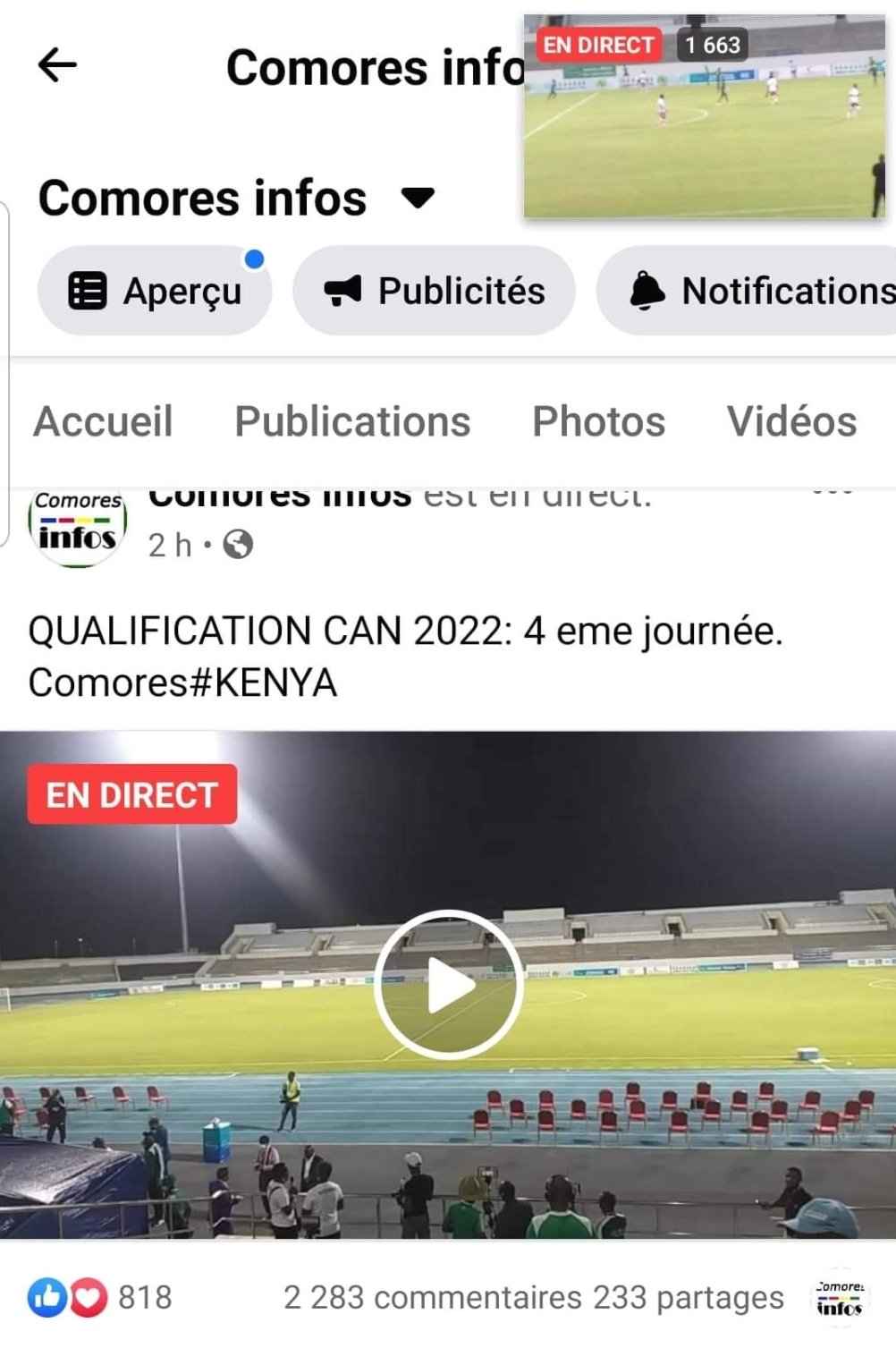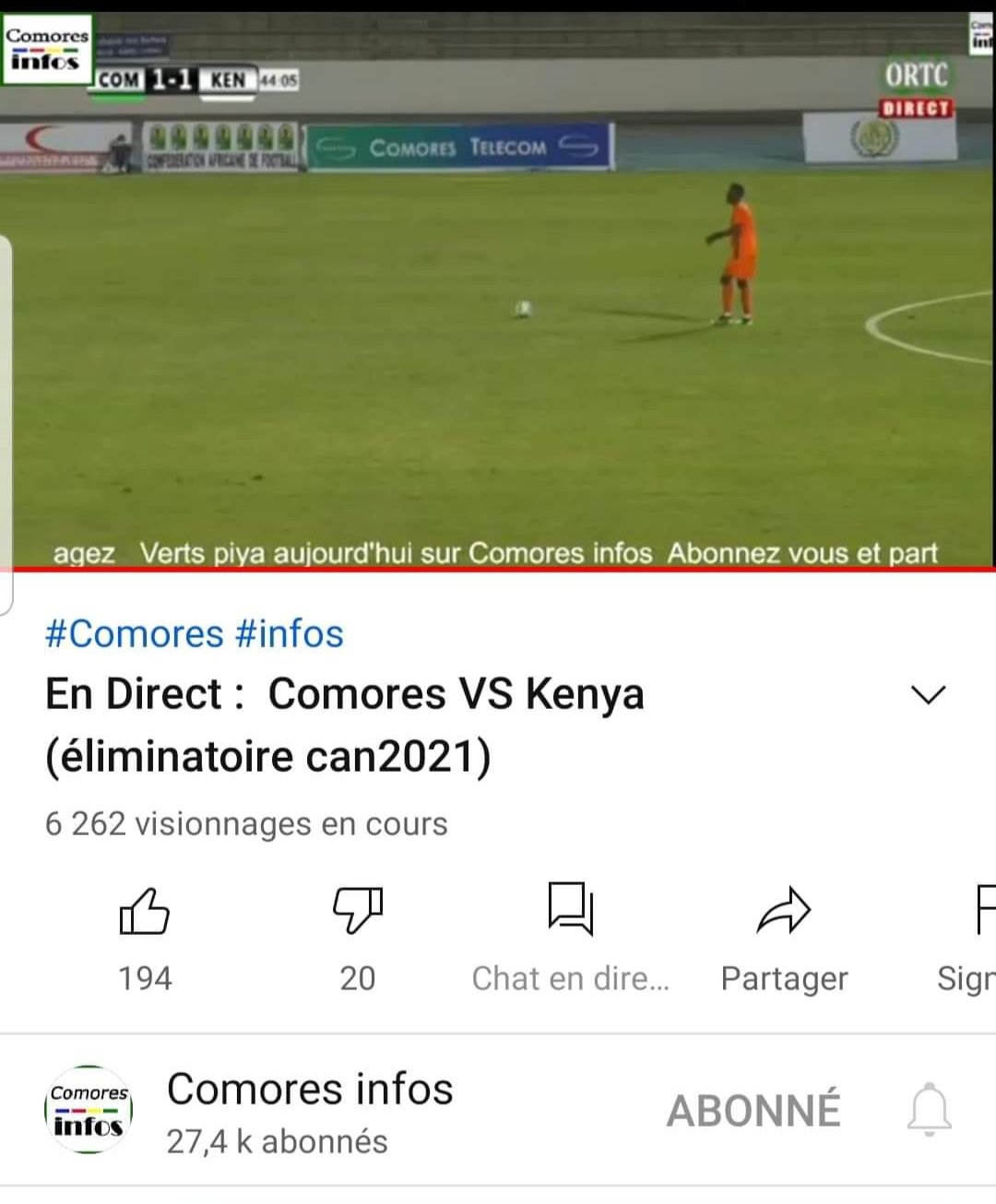La rencontre entre les Comores et le Kenya a été très suivie. La grande majorité des internautes qui ont regardé le match ont choisi Comores infos. Vous étiez entre 7800 et 10 000 personnes à nous suivre en direct sur nos plateformes.