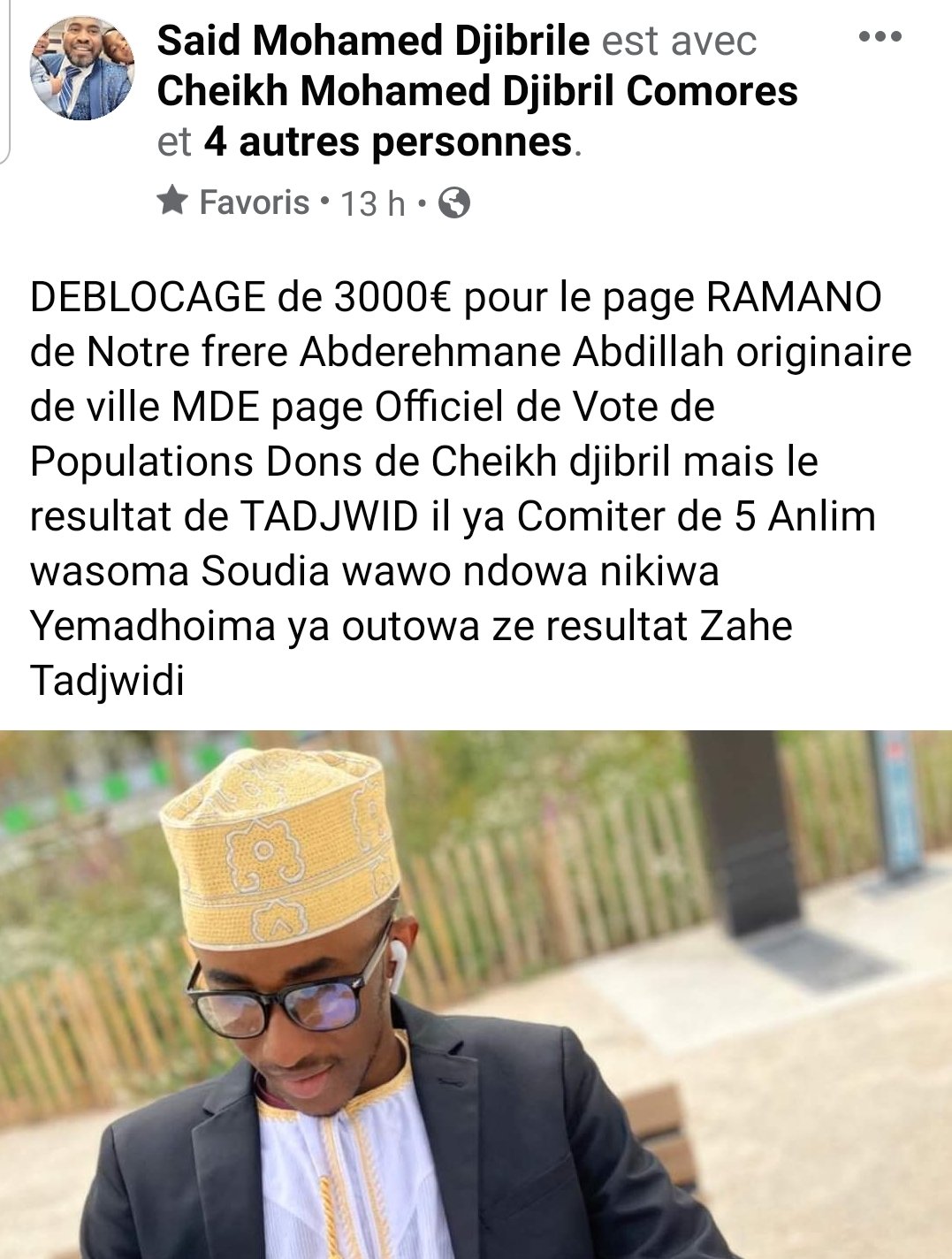 Ramano, l’incontournable humoriste avec plus de 40 000 abonnés sur Facebook reçoit 3 000 euros pour avoir fait de sa page, le lieu des votes du concours de lecture du Foundhi Djibril.