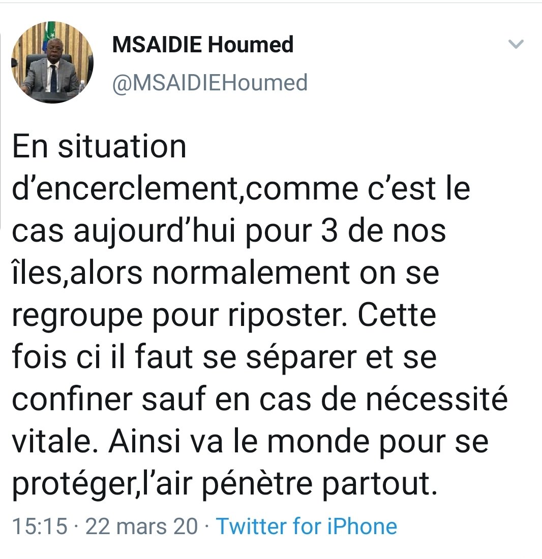 Le ministre de l’économie Houmed Msaidié semble être seul à prendre sérieusement le danger du coronavirus. Cet après-midi, le ministre a interdit toutes coupures aux clients pour facture impayée.