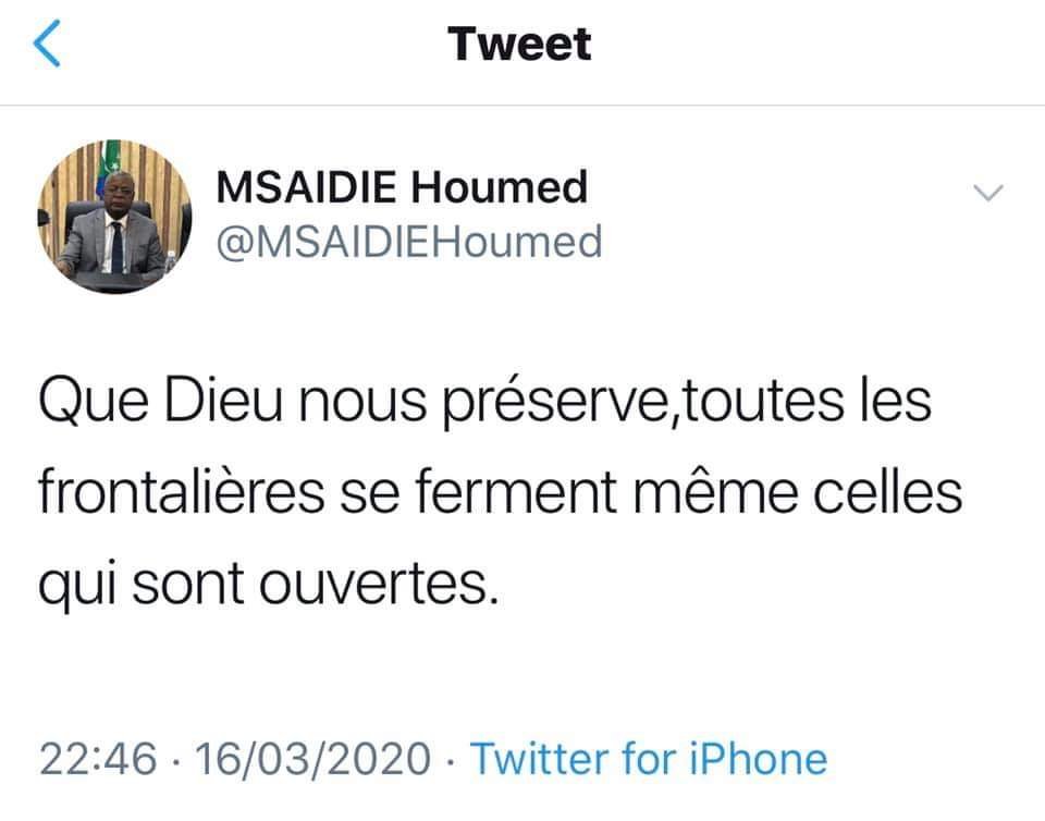 Mais la fermeture des frontières pendant 15 jours de l’Union européenne s’applique également à Mayotte et la Réunion. Par conséquence les liaisons aériennes entre La Réunion, Mayotte vers Anjouan, Ngazidja sont suspendues pendant 15 jours.