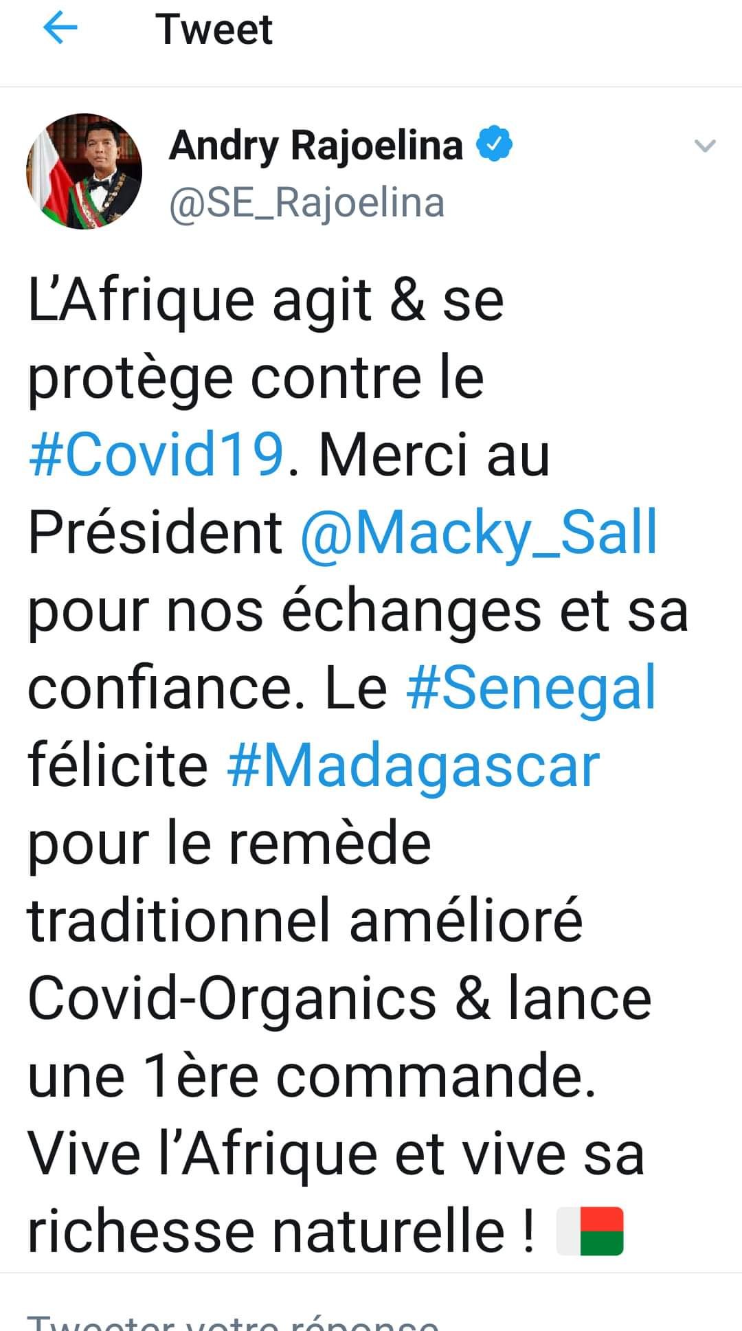 Le président Sénégalais Macky Sall passe sa première commande de Covid Organics auprès des Malgaches.