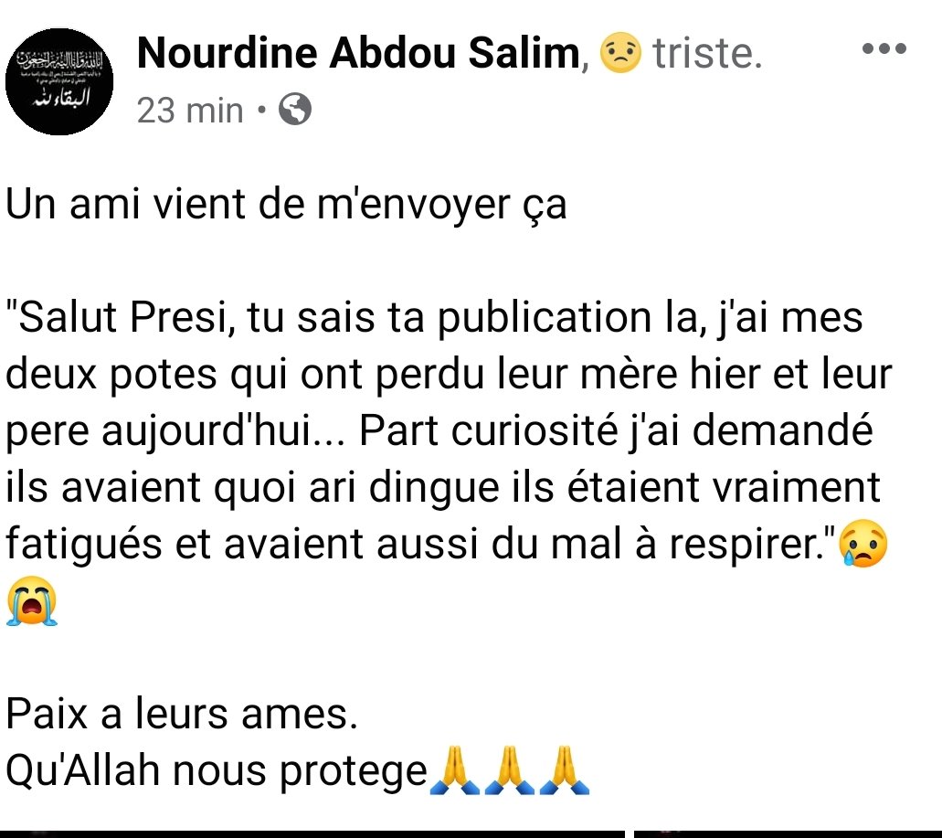 C’est un témoignage bouleversant et qui appelle la population à la prudence. Un comorien a perdu son père et sa mère de problèmes respiratoires à l’hôpital. Le nombre de décès ne cesse d’augmenter chaque jour dans notre pays. Malgré le silence du gouvernement, les témoignages se multiplient et l’hôpital El-Maarouf se remplit. Tout le monde sait qu’il ne s’agit pas de la dengue, ce n’est pas la première que la dengue est aux Comores et elle n’avait jamais fait autant de victimes.