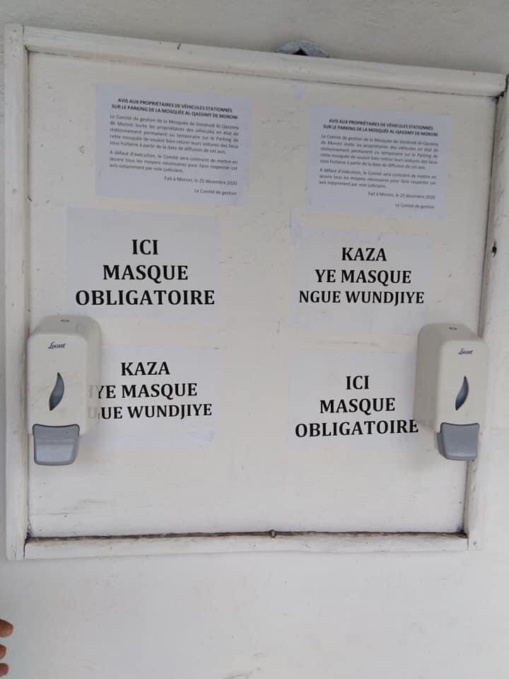 La grande mosquée de Badjanani a installé à l’entrée des doseurs-distributeurs de gel hydroalcoolique pour le nettoyage des mains.