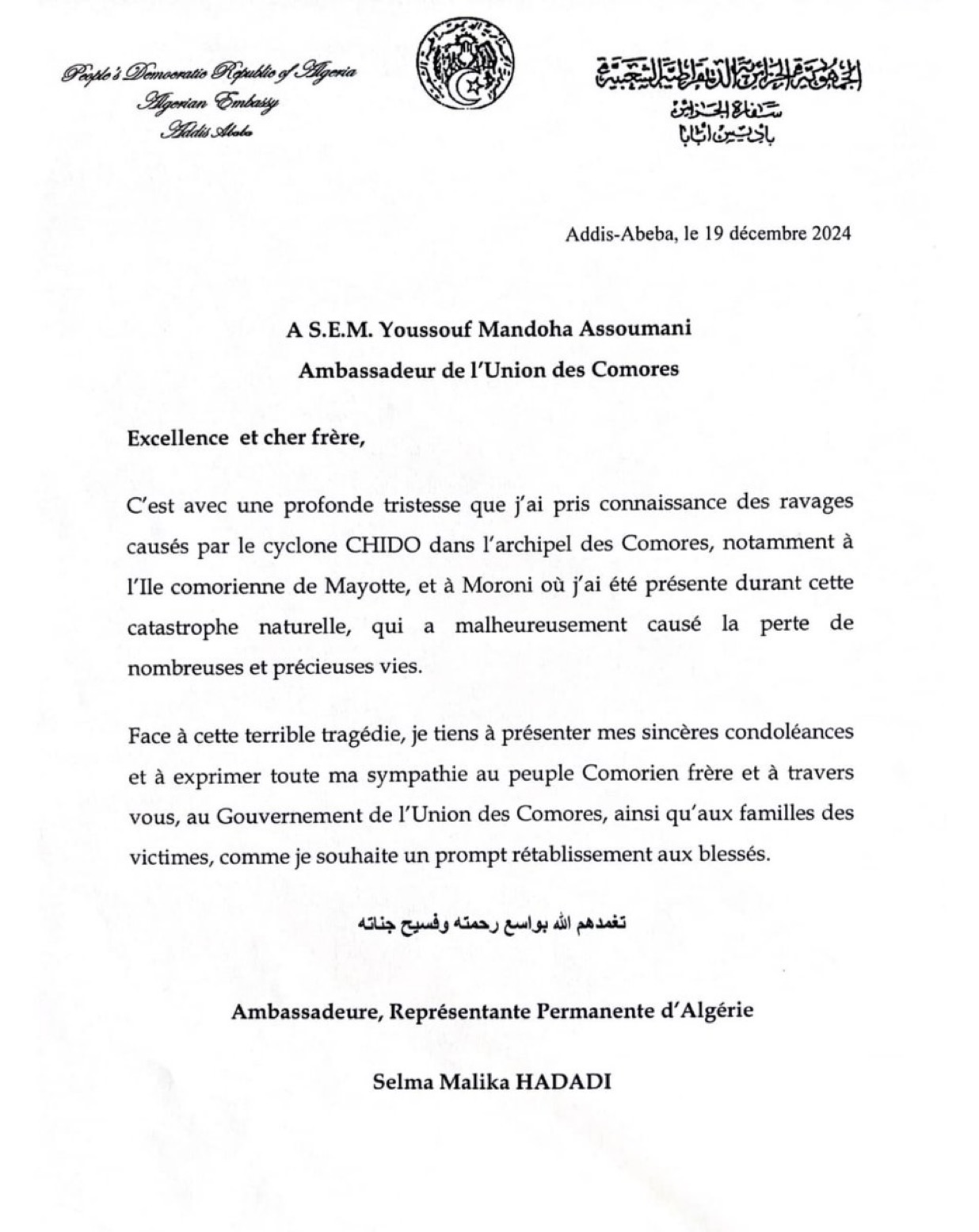 En revanche, l’Algérie, pays rival du Maroc, a su saisir l’occasion pour marquer des points diplomatiques. Dans un communiqué officiel, Selma Malika Hadadi, ambassadrice et représentante permanente de l’Algérie, a exprimé ses sincères condoléances au peuple comorien et aux familles des victimes, soulignant la solidarité entre les deux nations. Ce geste a été perçu comme un acte de respect envers la souveraineté comorienne et une reconnaissance de leurs liens historiques.