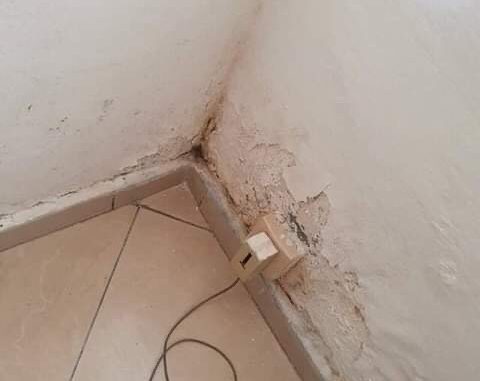 Une des chambres de l’hôtel Le Retaj, 4 étoiles paraît-il, où sont logés les rapatriés de Madagascar. Sur les murs, ça semble être de l’amiante. Ce qui est dangereux, très dangereux pour l’homme car cancérigène.