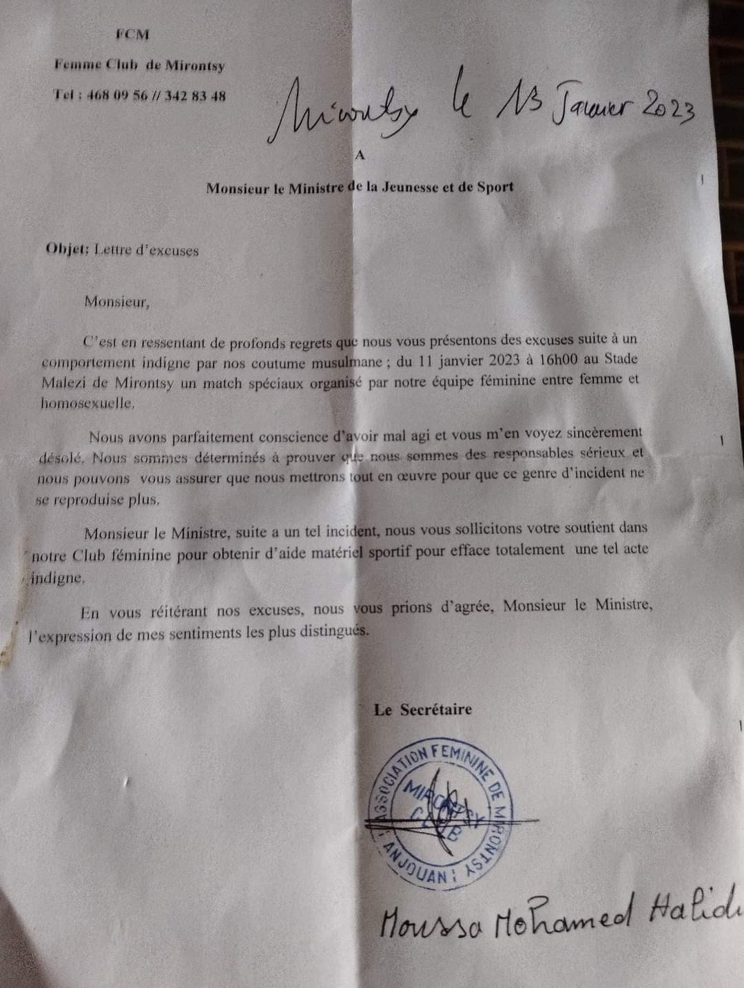 Un match de football a eu lieu à Anjouan, des femmes ont joué contre des homosexuels.