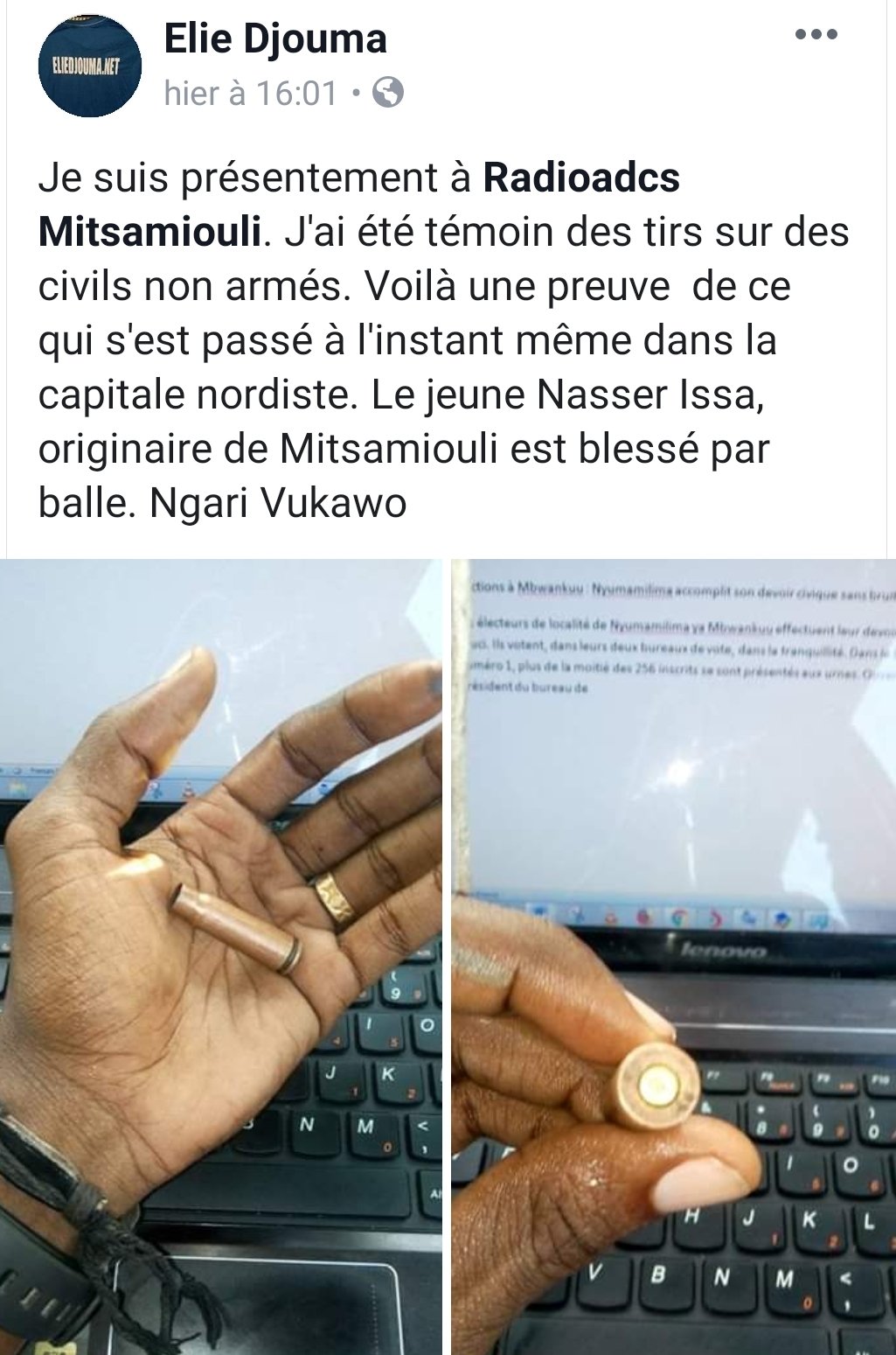 Des journaliste du quotidien gouvernemental ont posté des messages dénonçant la violence des forces de l’ordre à Mitsamihouli. « Les forces de l’ordre ont tiré avec des balles réelles sur des civils non armés », selon les journalistes.