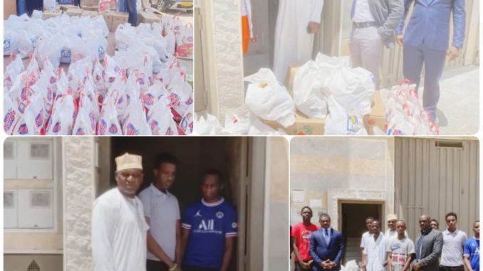 Le Consul général de l’Union des Comores à Lâayoune, Saïd Omar Saïd Hassane, accompagné de ses homologues consuls généraux à Laâyoune ; le Consul du Burundi, Dr Ndjagijimana Benjamin et le Consul du Gabon, Issaah lezin Boussougou ont distribué en ce mois sacré du Ramadan des kits alimentaires aux étudiants subsahariens résidant à Lâayoune au Maroc.