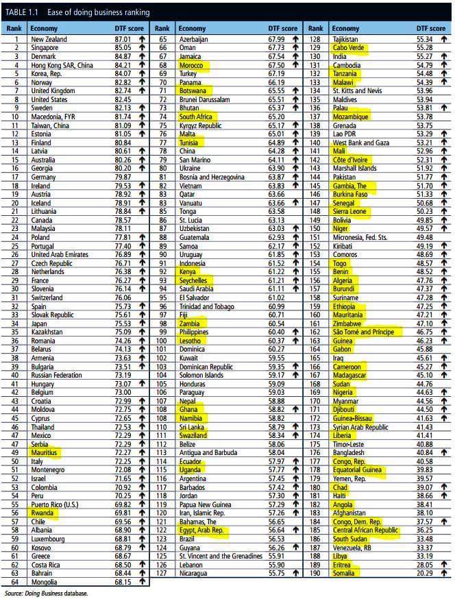 Le 14ème rapport annuel du Groupe de la Banque Mondiale, mesurant les régulations favorables et défavorables à l’activité commerciale a été rendu public ce mardi 25 octobre 2016. Le » Doing Business 2017″ est une publication phare du Groupe de la Banque Mondiale qui présente des indicateurs quantitatifs sur la régulation des affaires ainsi que sur la protection des droits de propriété de 190 pays.