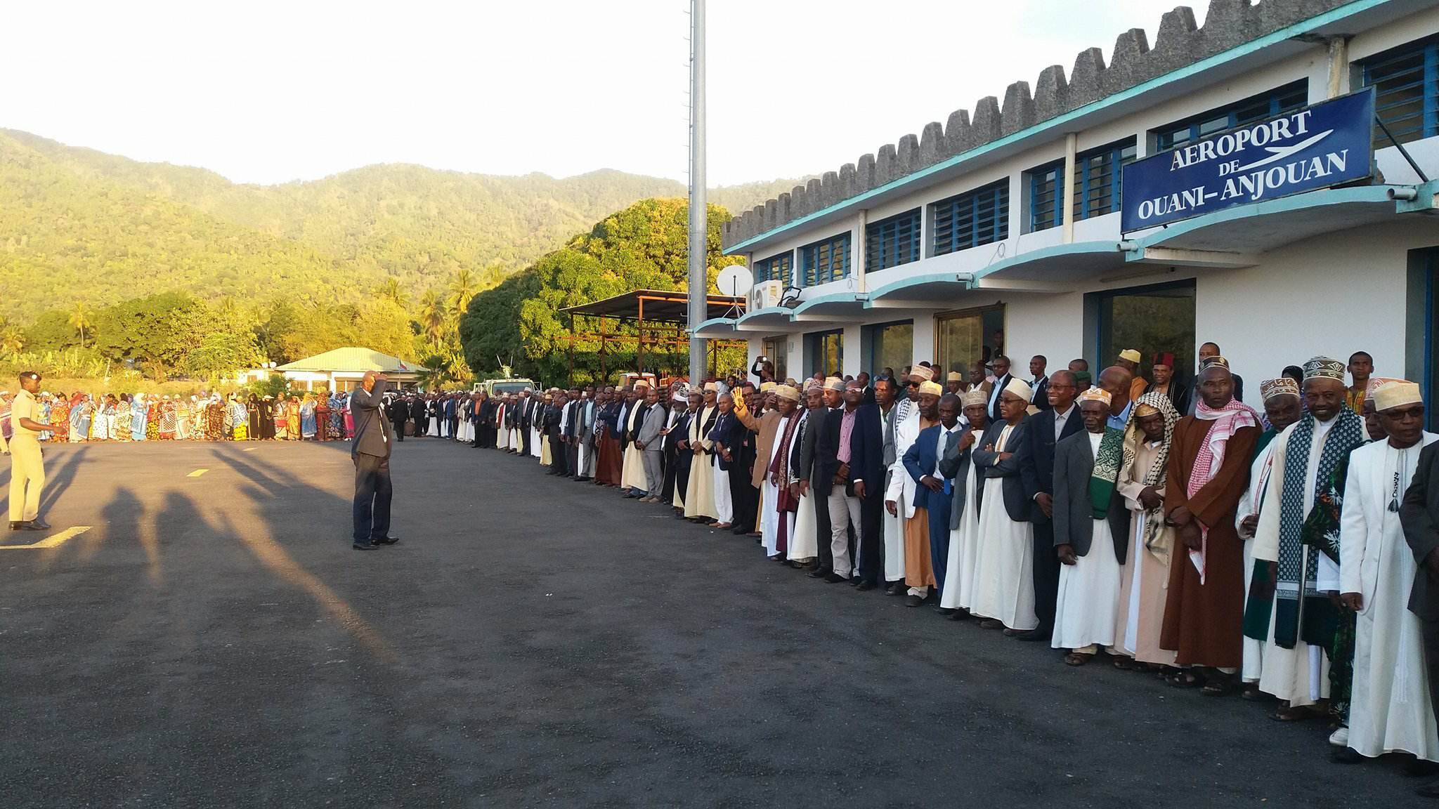 Dans le tarmac de l’aéroport de Ouani, une masse humaine pour accueillir le président de l’Union. Près de 500 personnes étaient mobilisées à l’occasion. Une pratique pourtant bannie par le président de la République lui-même.