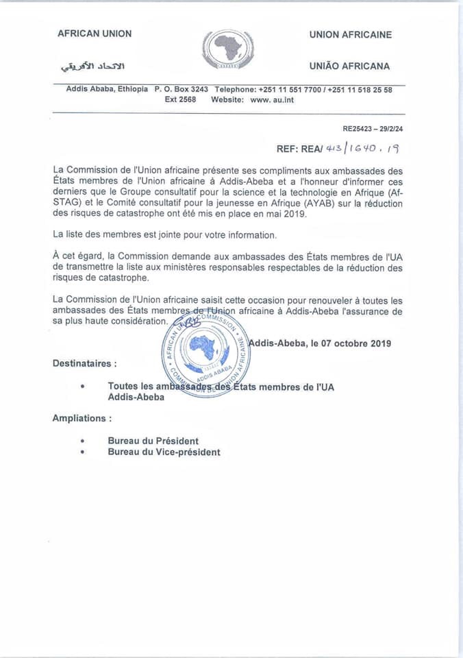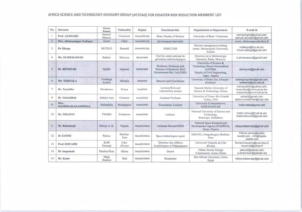 L’Union Africaine officialise le Groupe Consultatif pour la Science et la Technologie en Afrique (Af STAG). Le Dr Abdoul OUBEIDILLAH, professeur assistant à l’université du Texas, est un de ses 15 membres. Le choix des membres se fait sur la base de critères scientifiques sans campagne des gouvernements des pays d’où sont originaires les membres.