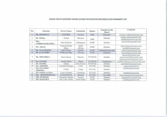 Le Comité consultatif pour la jeunesse en Afrique pour la réduction des risques de catastrophes a aussi été officiellement constitué.