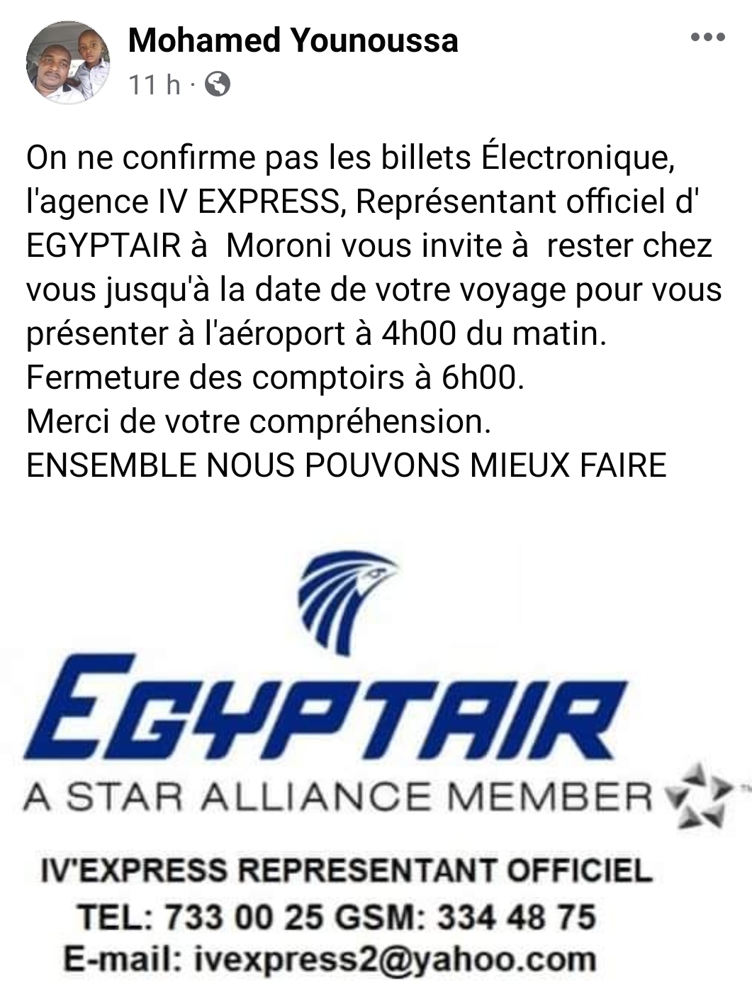 C’est devenue une mode qui perturbe le bon fonctionnement des plusieurs agences de voyages aux Comores. Des passagers qui ont déjà acheté des billets avec l’heure et la date de départ se pointent en agence pour demander une confirmation de voyage. Une bêtise et une ignorance qui commence à agacer et à perturber le bon fonctionnement des agences. https://youtu.be/9hnLhnExMMg