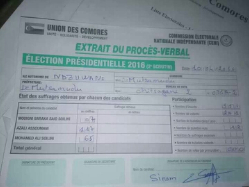 Nous publions ces résultats qui sont provisoires. Ce n’est pas le résultat officiel mais une tendance selon une source Comores infos. Nous mettons à jour cet article tous les 2 minutes pour vous afficher les résultats. Il vous suffit d’actualiser pour voir tous les résultats des bureaux
