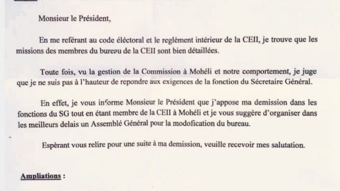 2 commentaires sur Élections : le SG de la CEII de Mohéli démissionne